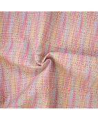 Tissu en simili cuir 100 % PVC/PU imitant le tressage du cuir avec un motif en relief zigzag multicolore.